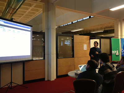 | Agustín giving the talk with the Enrique's assistance |